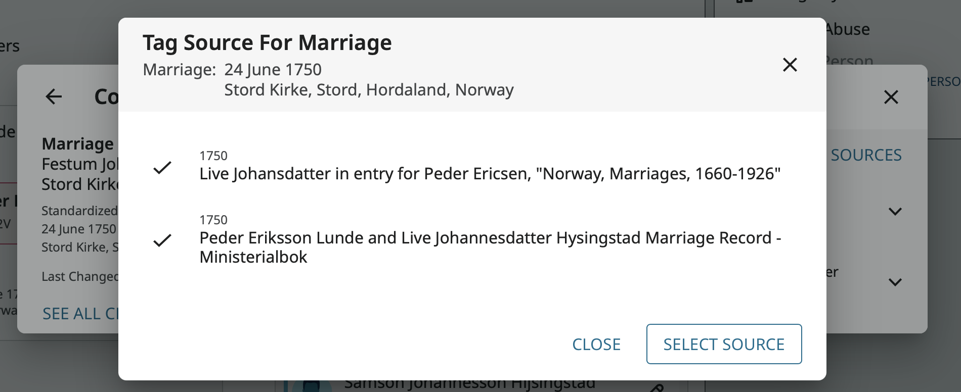 Thanks @Gordon Collett for the explanation. So how do I Tag a Source that's already listed in the Sources Tab to the Marriage? Doesn't seem to work that way…