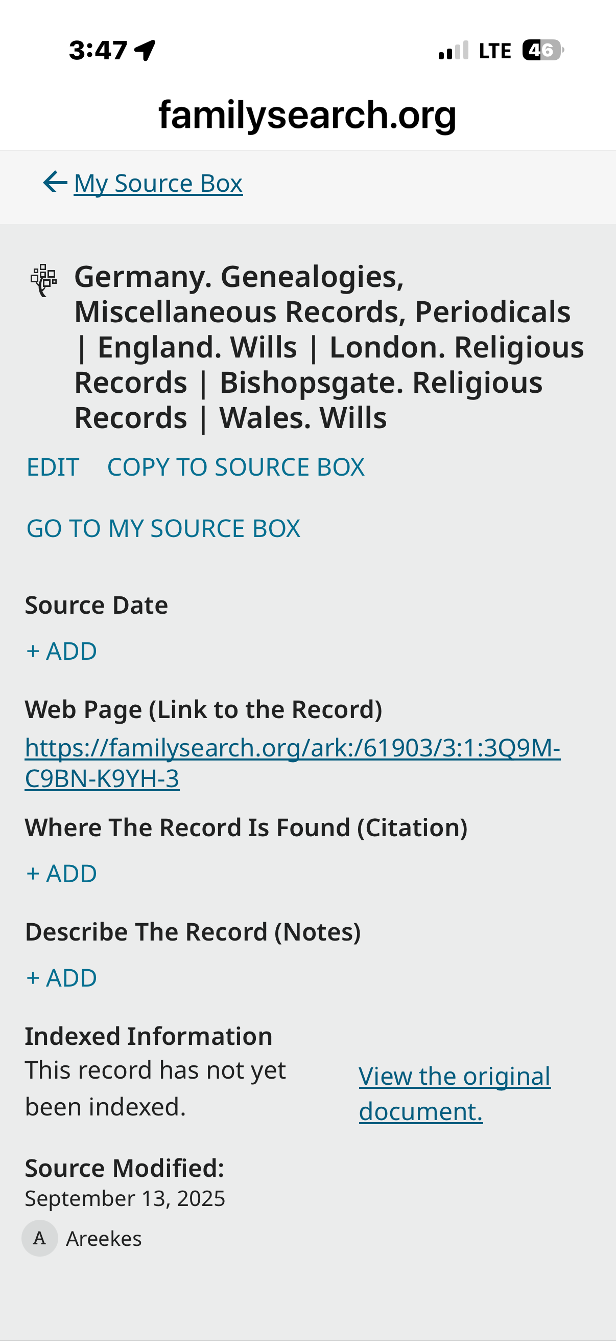 The more frustrating part is all identifying information other than the title has been stripped on my records and looking for the titles those sources aren’t even available from a history center. (Page numbers, image numbers, etc. all gone). I write in the notes section for most of them so my written notes are there at least helping me remember some of what I found.
