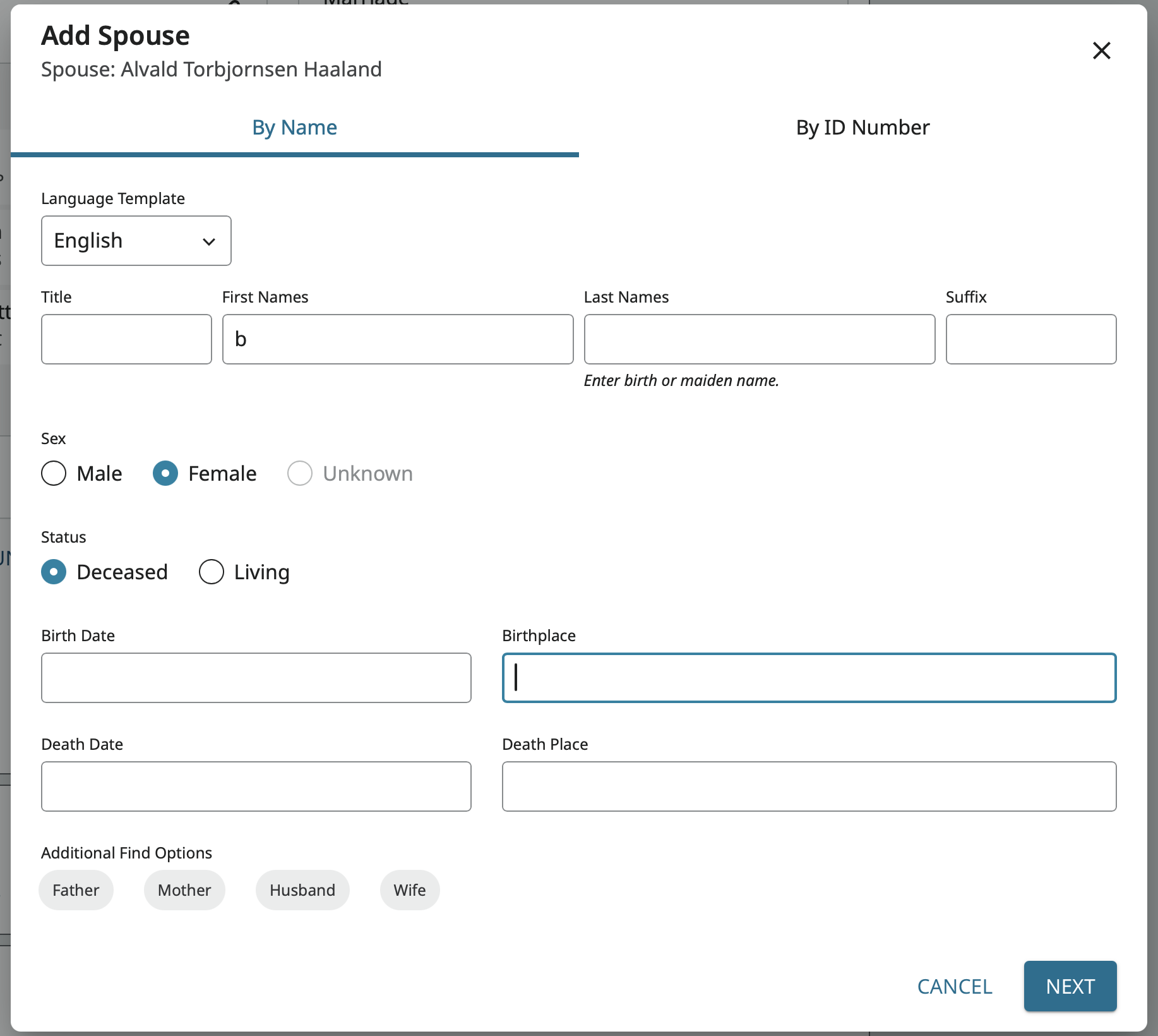 BTW You bring up a great point. Glad you asked. Let me tell you why specifically "unknown" is in the birth place. I'm going from memory now which was several days ago, but. When I created this person I put in various bit of info to hopefully to find a match when I created him. A match was not found so I created them as a new person. However when I created him I had the birth place as some location say XXXX don't remember now . The Software created them. However for some reason I wanted to remove XXXX after the person was created because I was not sure of his birth place. I only put it in at the beginning of the process to hopefully find a match. I did not realise that the birth location info would be copied over to the newly created person. Now that they were created I could not change the birth location. I did not want to leave it as it would be a red herring for people. (possibly the wrong location) So I found the setting "unknown". If there were a way of clearing it and leaving it blank I would have done that. But I could not. I. I thought If I or someone else found better info they could change it. The point being once I created the person I could not clear the birth location and make it empty. So the only option I had was Unknown.