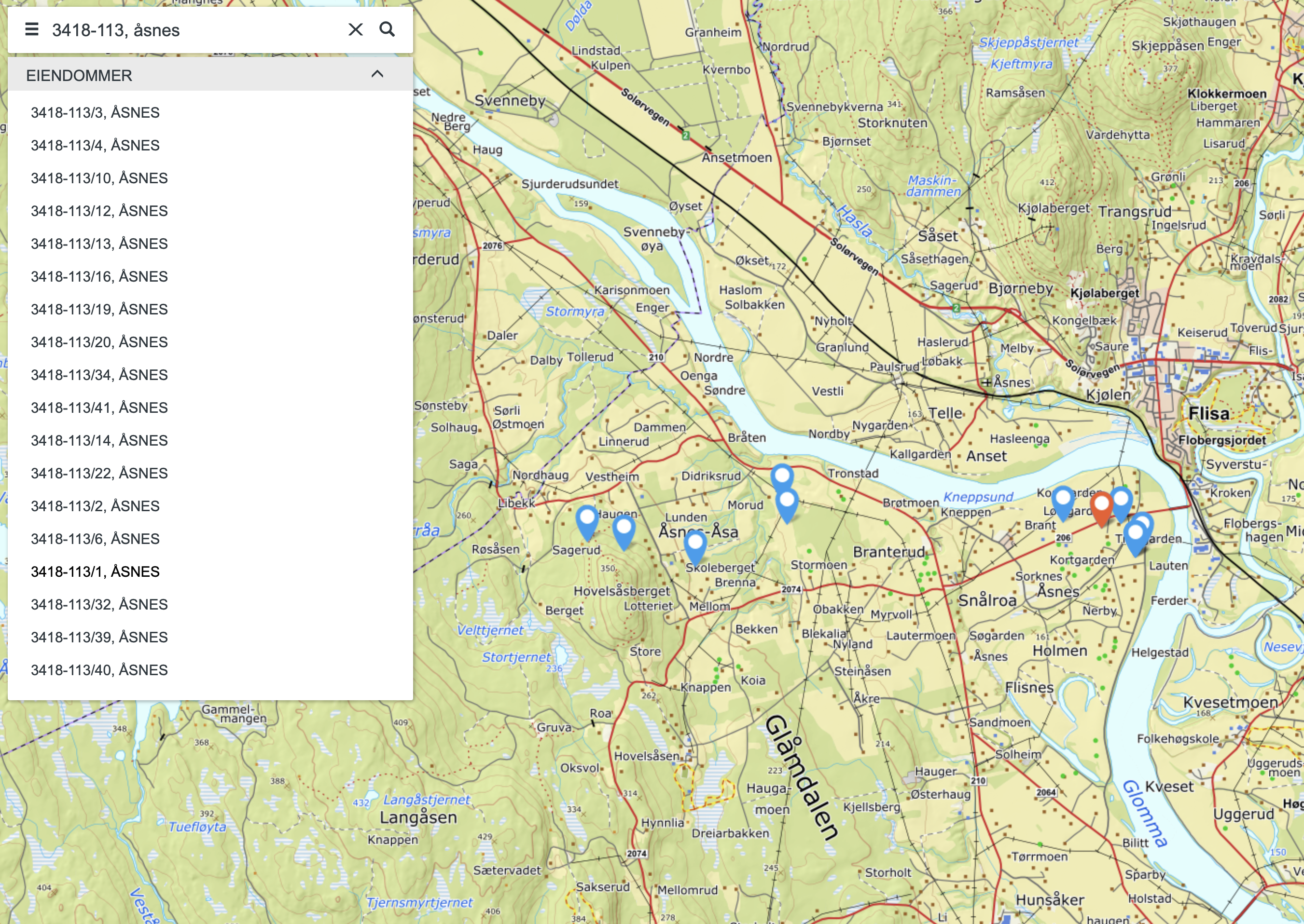 You can get a sense of the area the original farm covered. It was not necessary one contiguous piece of land. Bruk 1, which would have been the main part of the farm is at the red marker.