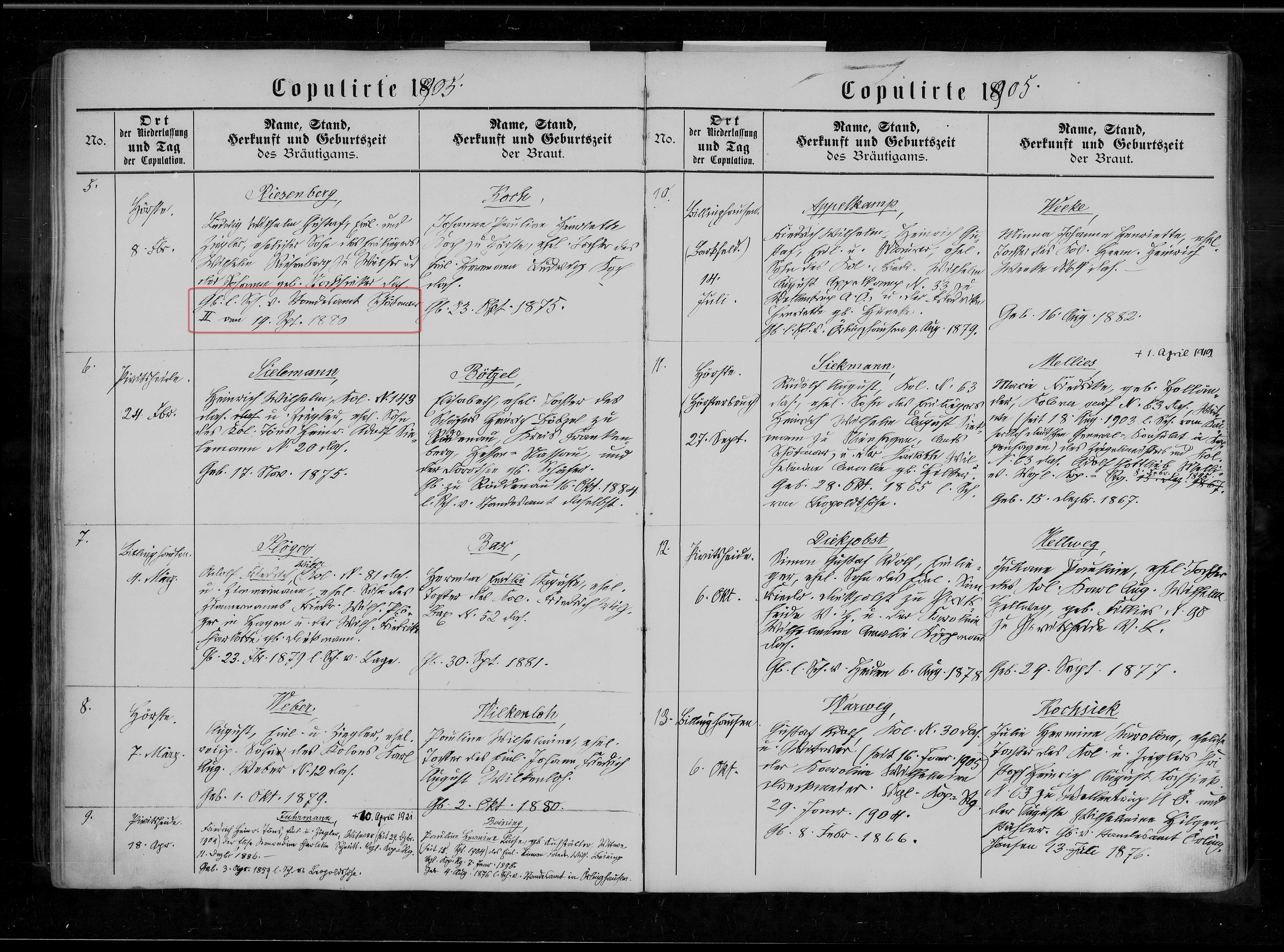 Gb. l. Sch. v. [=Geboren laut Schreiben vom] Standesamt Schötmar II am 19. Spt. 1880