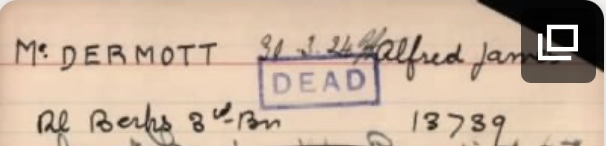 What is the meaning of the word "DEAD" on this WWI UK Pension ledger Index Card?