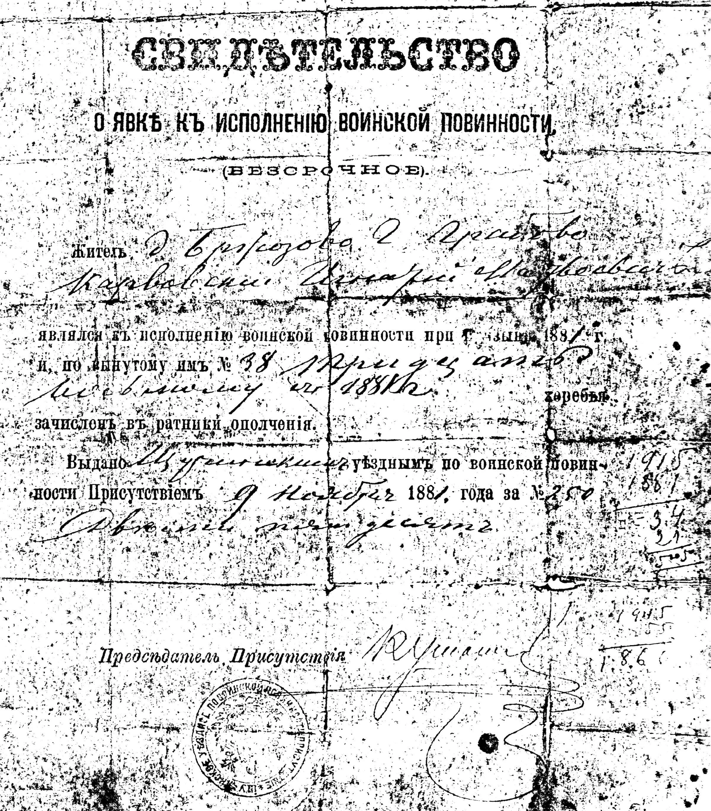 Another question I have is about the Russian military document. Was it required for him to register at a certain age, and therefore can I infer the year he was born?