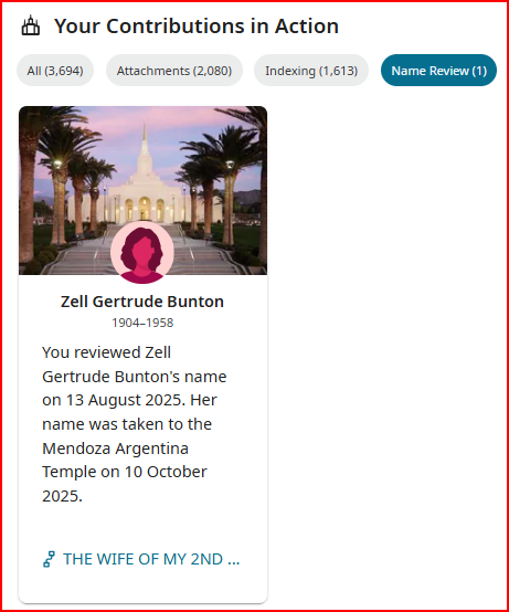 @MandyShaw1 Being a public user, you may not see the same things that a church member would. However, when you help with a review, that enables a patron to find an ancestor, create a profile, add a source, etc., FamilySearch likes to thank you with feedback on how your efforts have helped out. Thank you for all you do :)