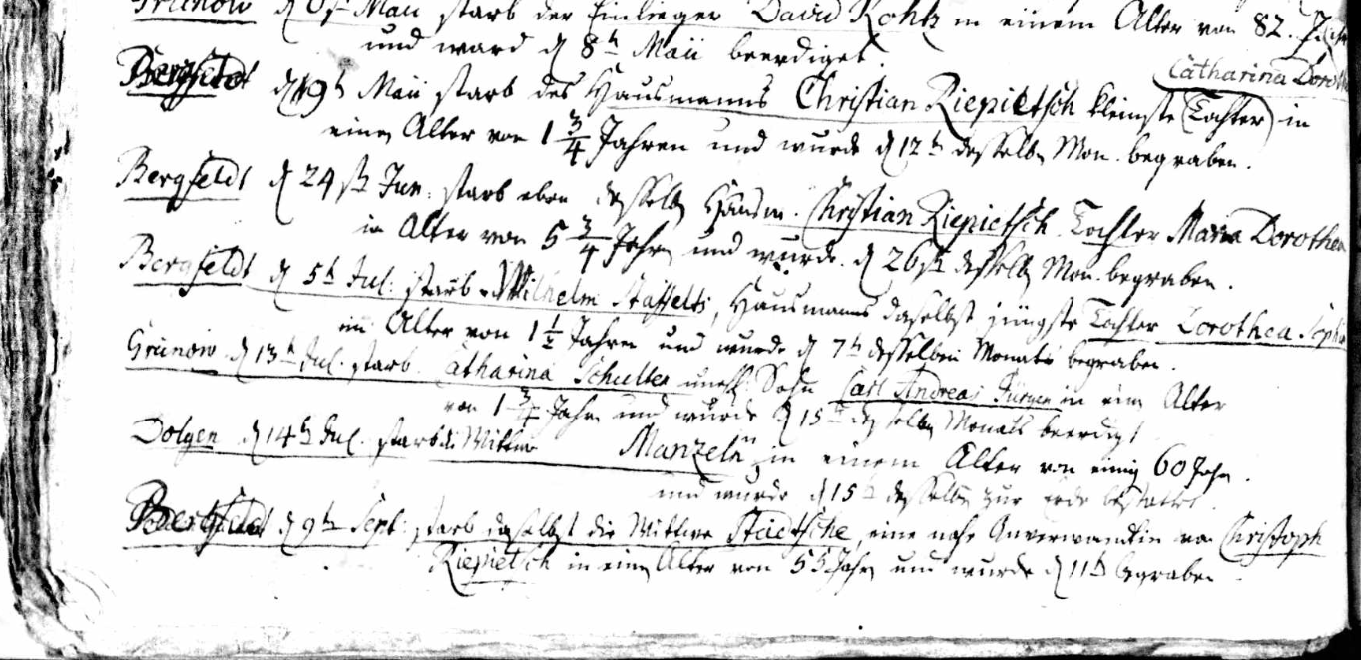 Bergfeld, 9 September: The widow Steidtsche, a close relative of Christoph Riepietsch, died there at the age of 55 and was buried on the 11th.