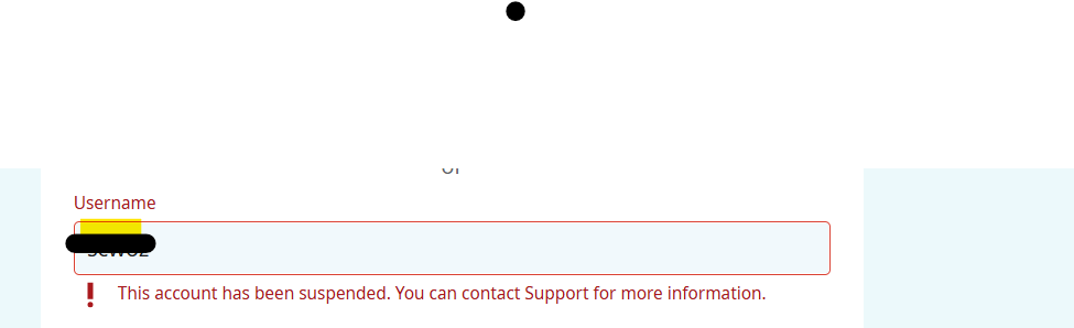 ! This account has been suspended. You can contact Support for more information.