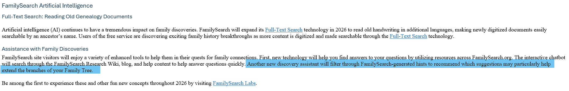From this week's FS newsletter, What to Expect from FamilySearch in 2026: Emerging Technologies Will Help Fuel New Family Discoveries