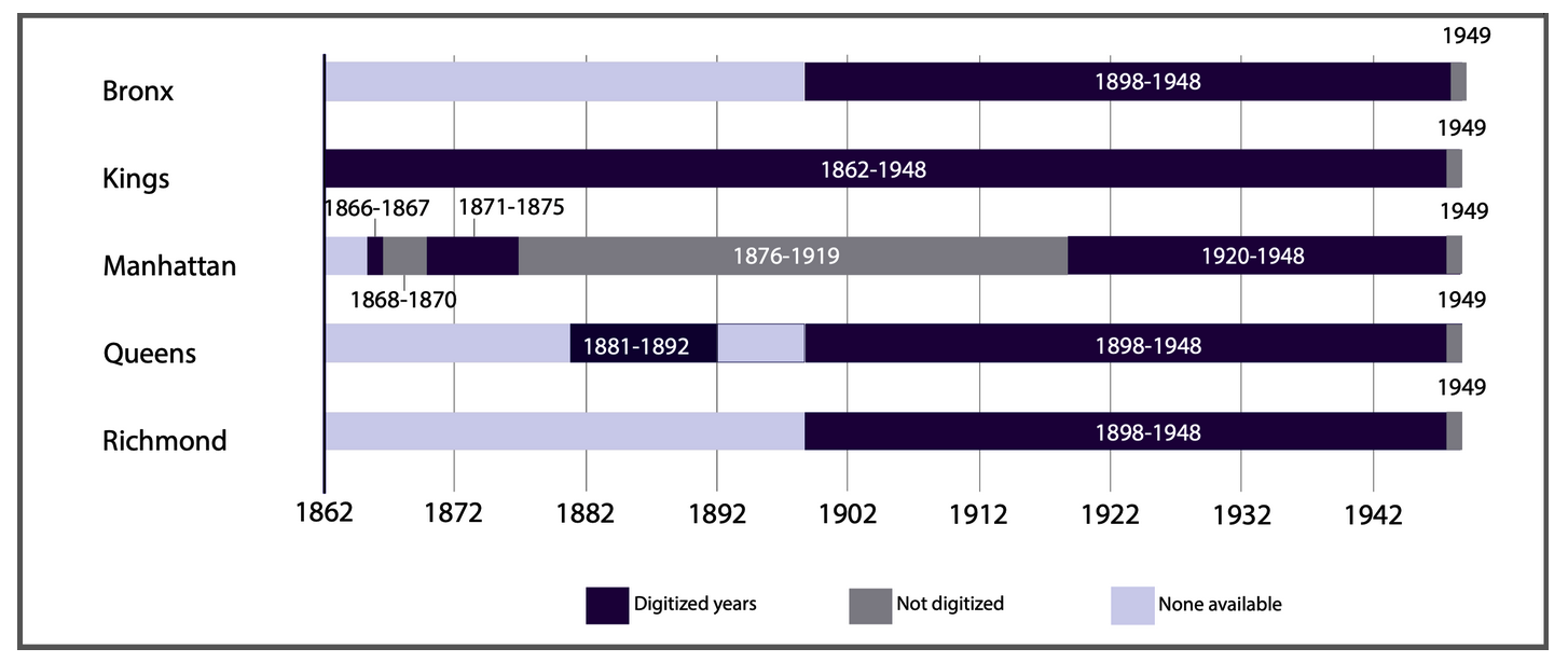 Color images of New York City death records are available, free, on the New York City site: https://a860-historicalvitalrecords.nyc.gov/search