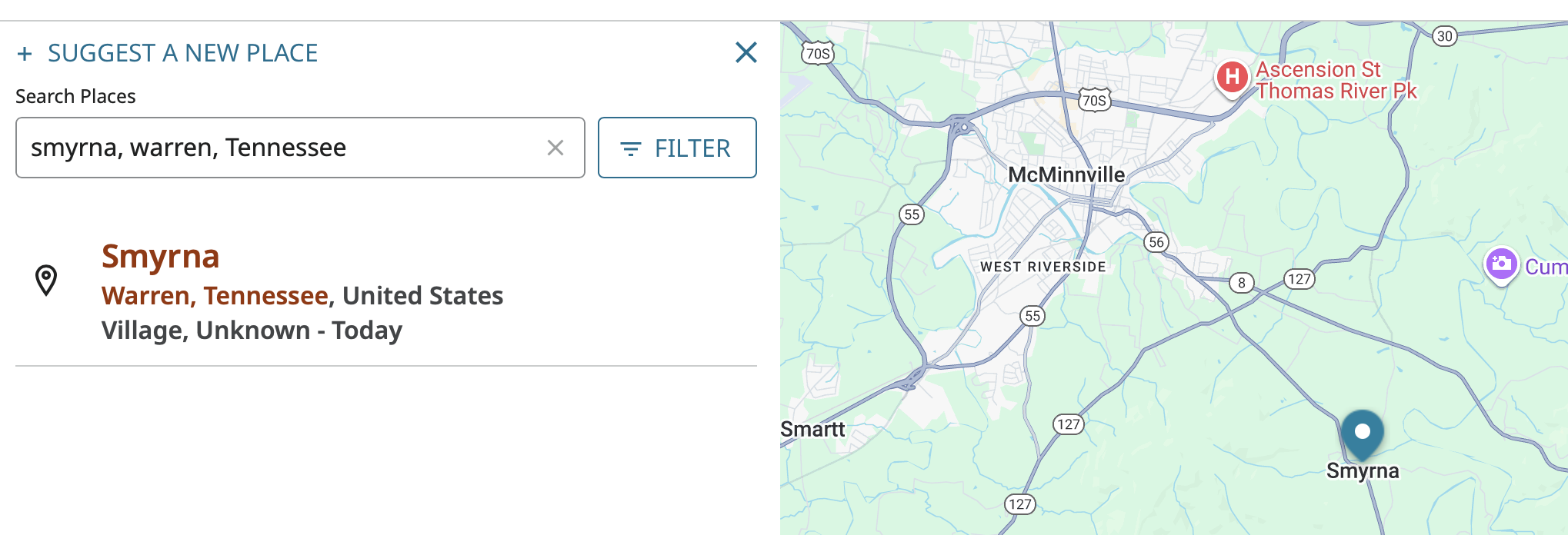There is no such place as McMinnville, Smyrna, Tennessee. Can someone please remove it from the choices?