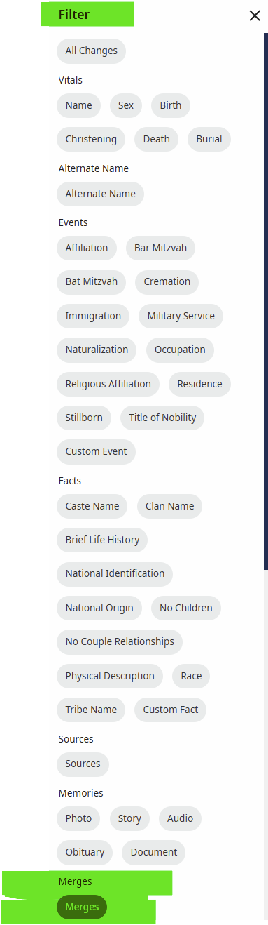 If you open the ChangeLog, you can filter to show only merges.