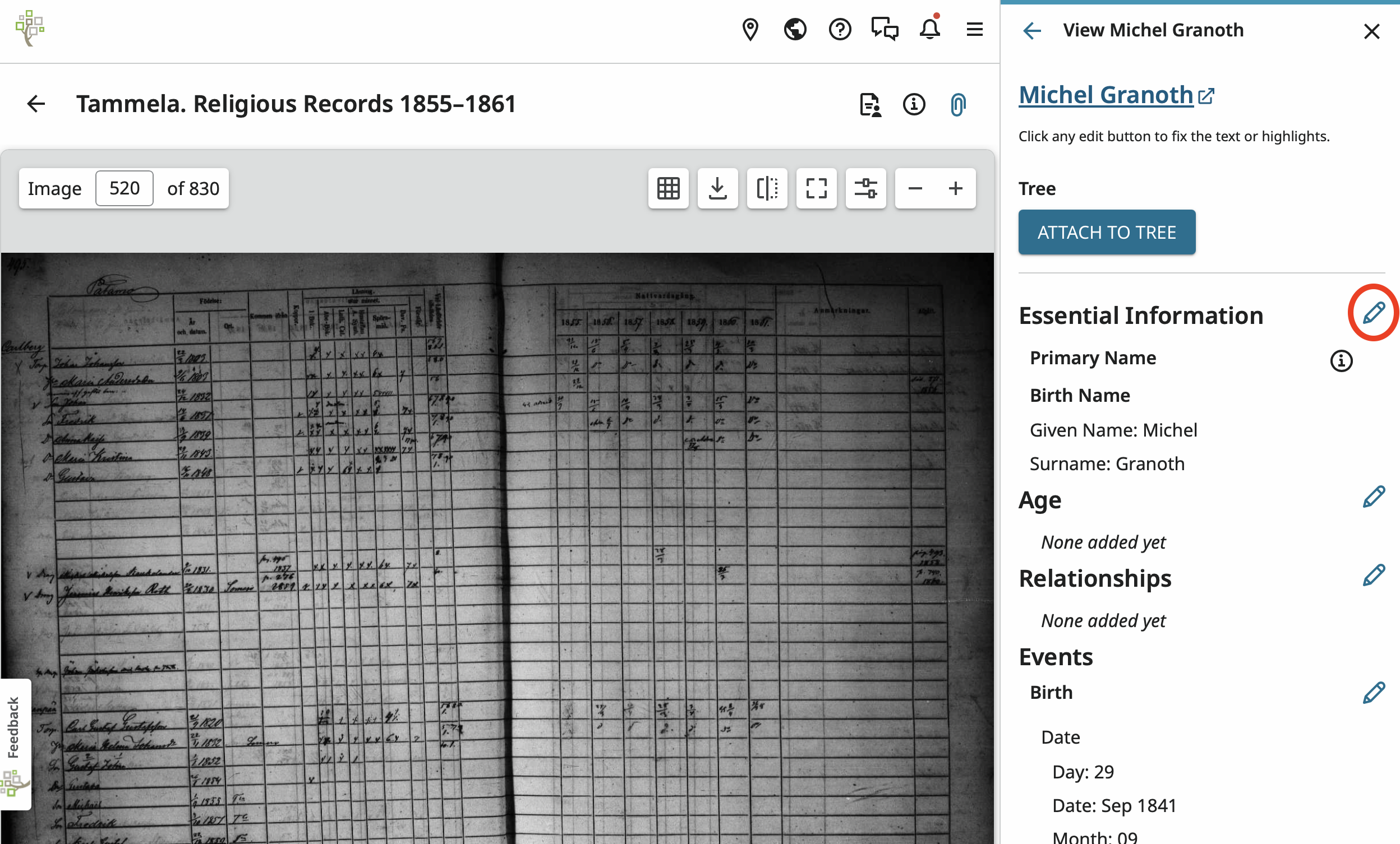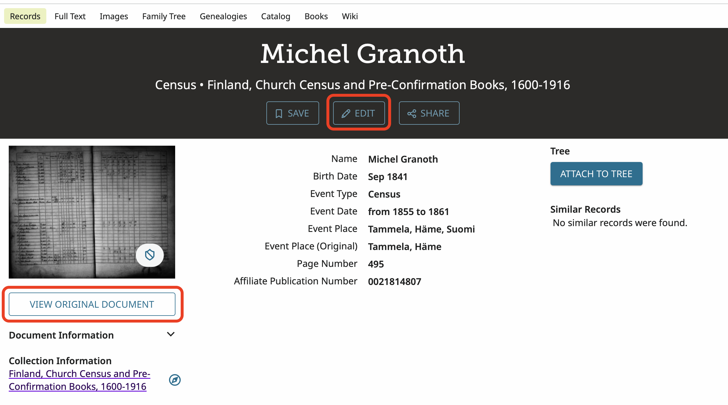 Another important item to remember, is that now you have found this record despite the incorrect spelling you should attach it to his profile in Family Tree. Then no one will ever have to search for it again. All they will have to do is go to his profile in Family Tree and it will be there.