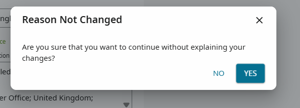 Bug: Unnecessary "Reason Not Changed" dialog
