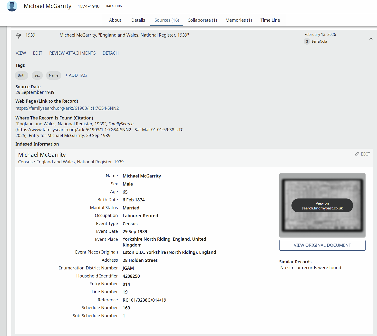 Could you possibly attach that one to Uncle Michael McGarrity K4FG-HB6? It's been dismissed, but it is definitely his record.Thanks again.