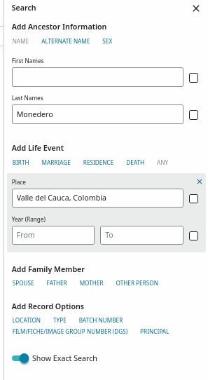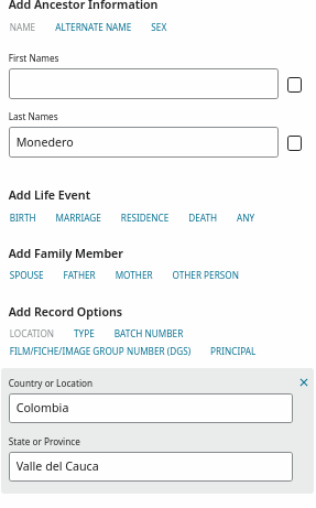 Your second search includes results from over 100 collections, from many different countries. There may be a mention of Colombia in those records.