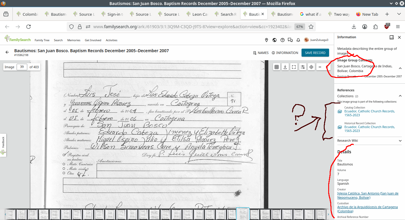 See how record comes from a Colombian collection — that somehow got linked to an Ecuadorian collection.
