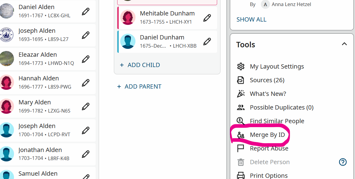 There are duplicate entries for my sister. I followed instructions on video but there is no Duplicate note in Research Help, so I am stuck. What now?