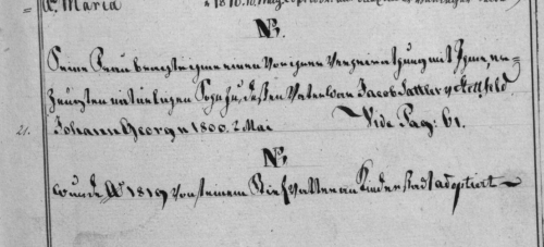 Johann Georh n(atus) 1800 2 Mai / Vide Pag: 61
