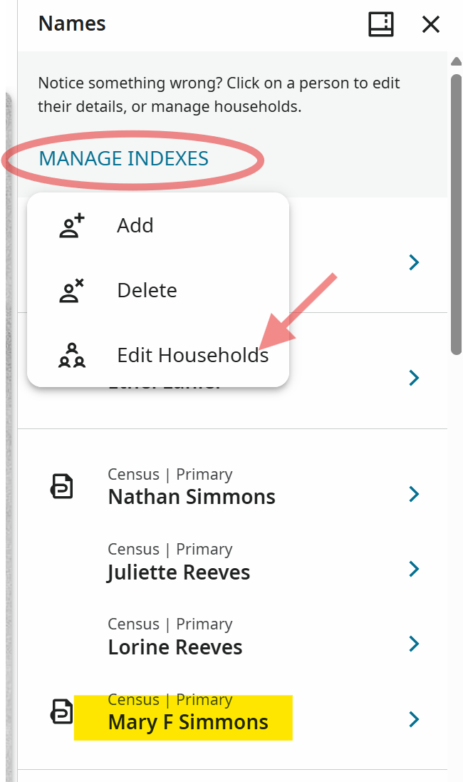 One example is this 1930 census household (https://www.familysearch.org/ark:/61903/1:1:3VVP-Z3Z?lang=en), which correctly lists Nathan's 2 step-children, but misses his wife Mary, who is indexed in a separate household (https://www.familysearch.org/ark:/61903/1:1:3VVP-8ZM?lang=en).