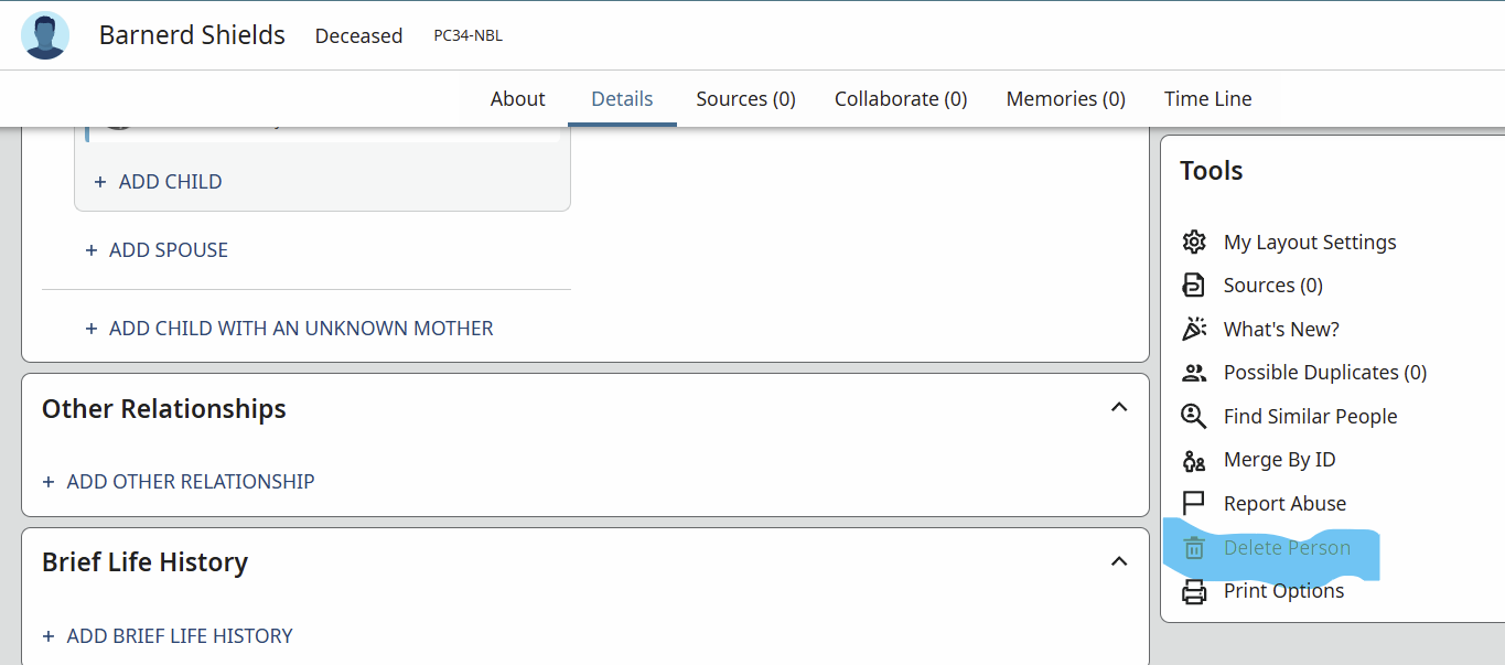I want to delete a person add in error number PC34-NBL. How so I do that.