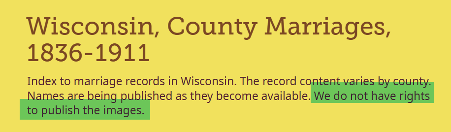 The state of Wisconsin has some of the most restrictive regulations regarding online display of vital records. Even if we purchase a copy from the state, we are restricted from posting the image of that record online.