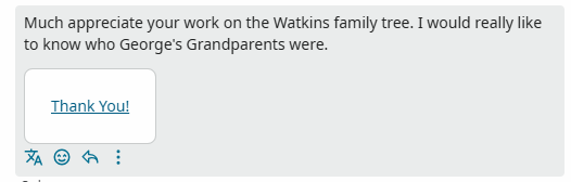 While I waited for clarification from the user as to which Watkins family they referred to, or who "George" is, I looked in My Changes for "Watkins". Result: nothing.
