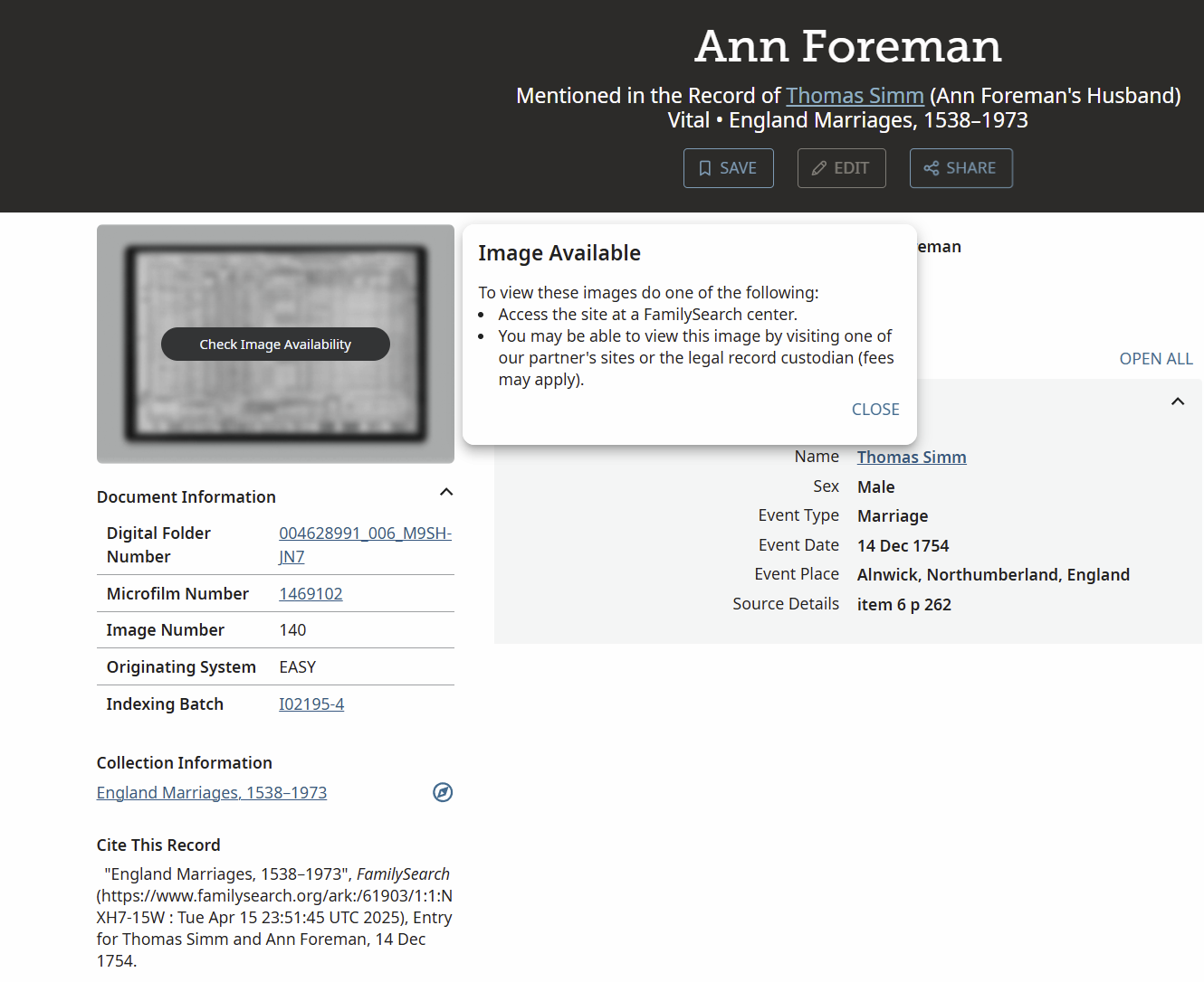 This link in the View Original document takes the user to page 272, which is burial records. Alnwick. Baptism Records 1749–1812, 1645–1748, Burial Records 1646–1748, 1748–1812, Marriage Records 1649–1749, 1750–1766, 1646 DGS #004628991, Item 6, Image 140 of 288, the marriage record is on page 262 which is Image 135 of 288.