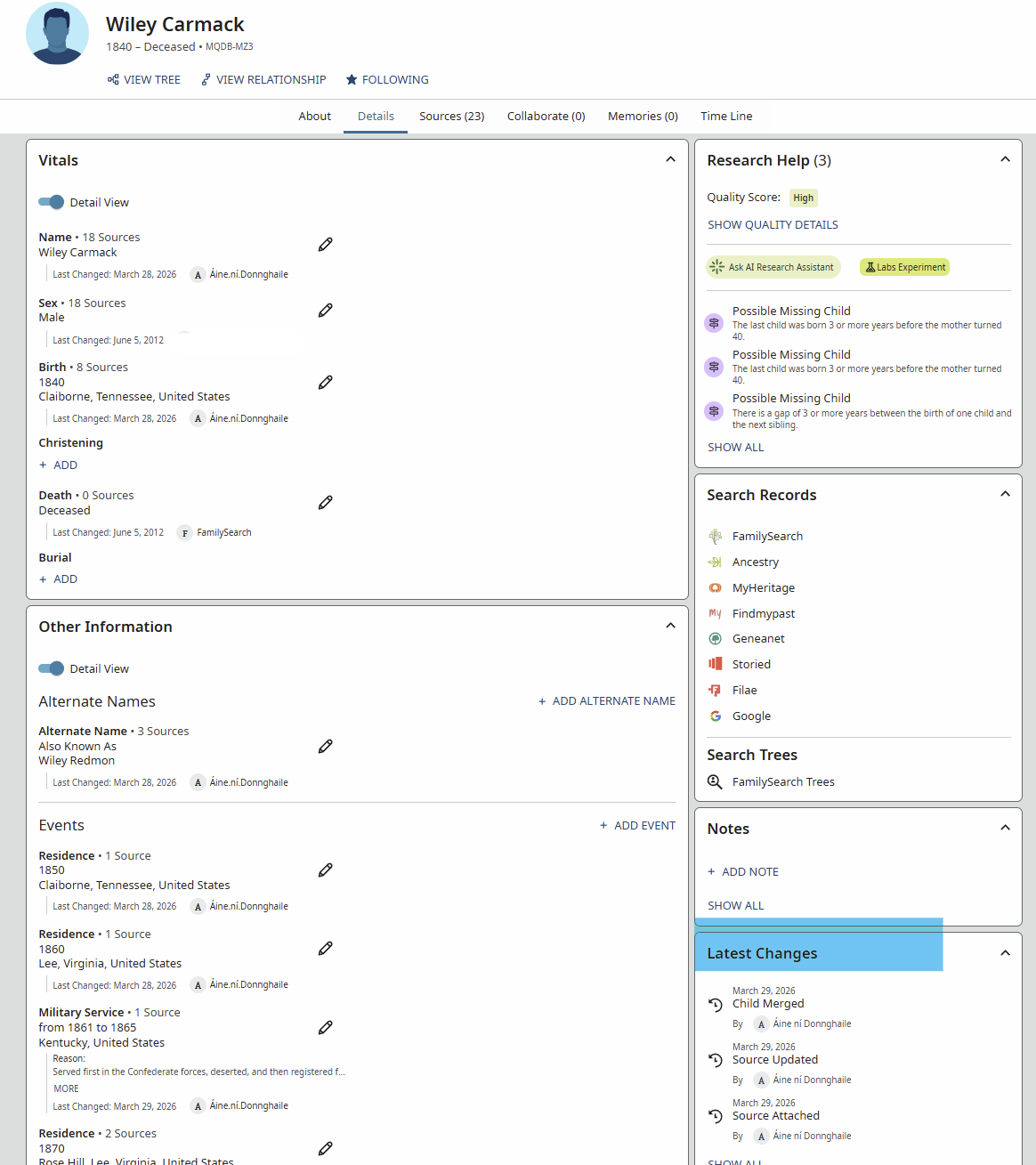 Just be sure that you are looking at the correct profiles. One of the biggest issues with a large collaborative tree is conflation - someone of the same name but not the same person.