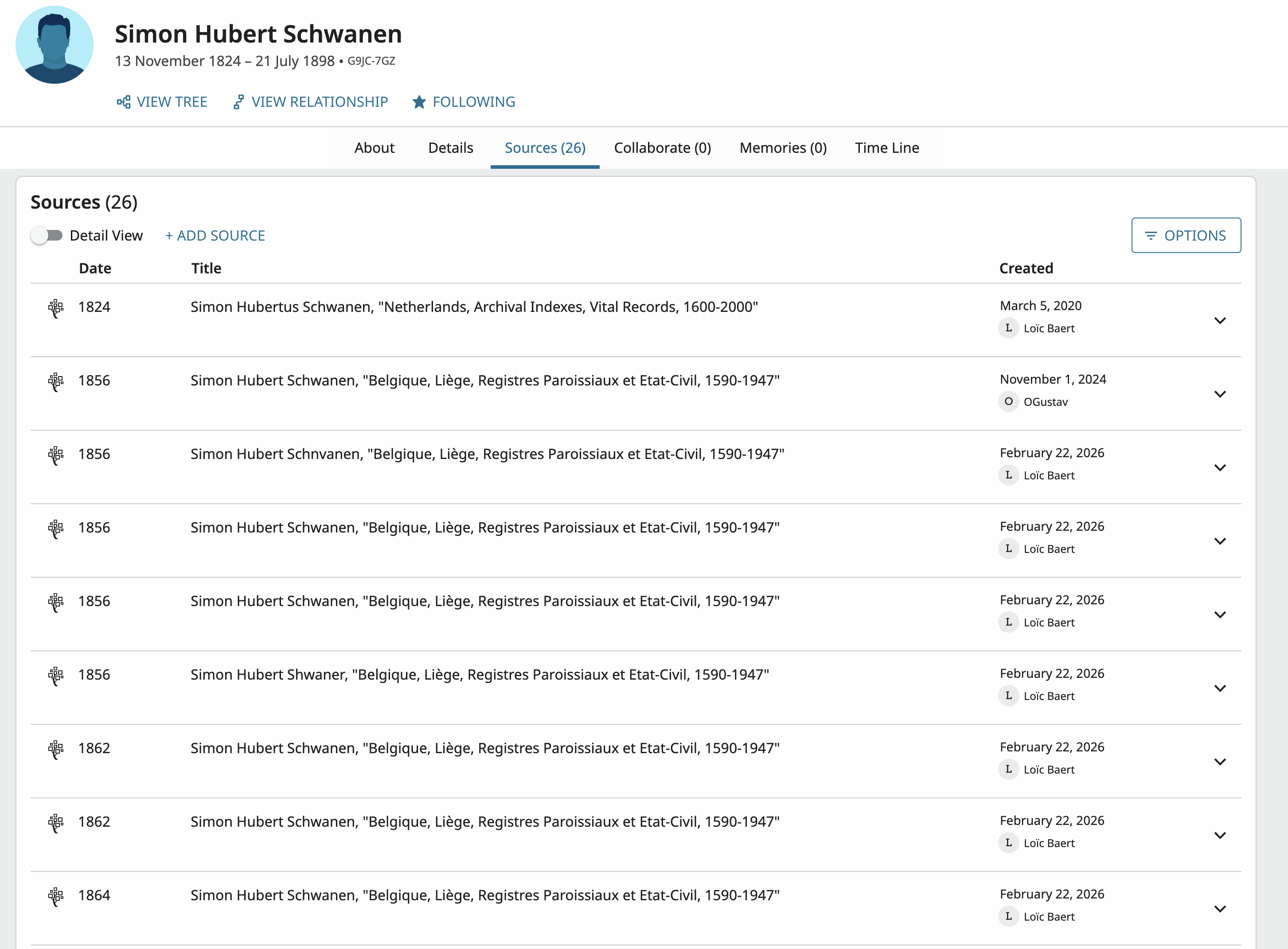 - 27 of the sources are from the same collection (Deutschland, Baden, Erzbistum Freiburg, katholische Kirchenbücher, 1463–1931).