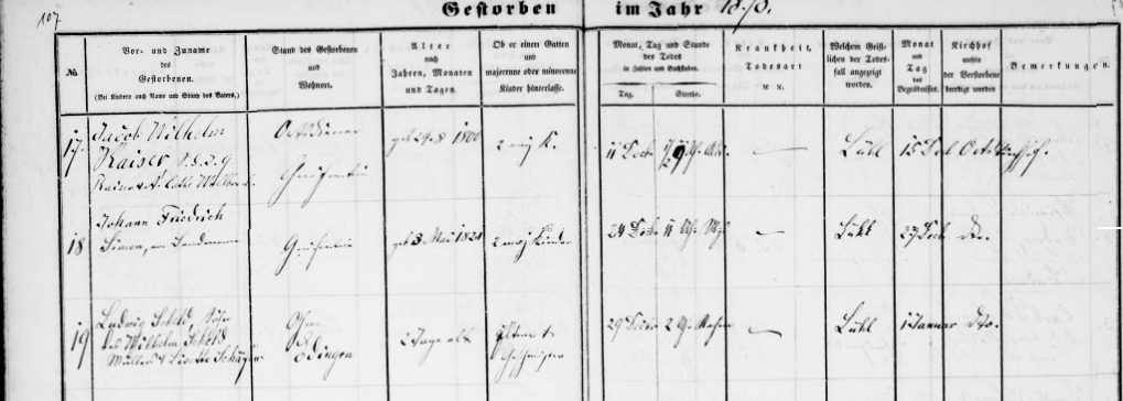Name of the deceased: Jacob Wilhelm Kaiser, son of J. G. Kaiser and A. Cath. Wallbruch.