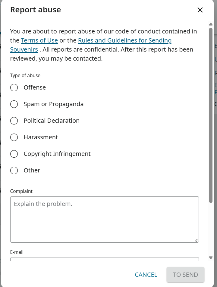 @GKP6 @Paula Padial Fuzaro Ao utilizar o botão localizado na parte inferior da página do perfil, na seção de ferramentas, você pode denunciar violações clicando no botão "Denunciar abuso".